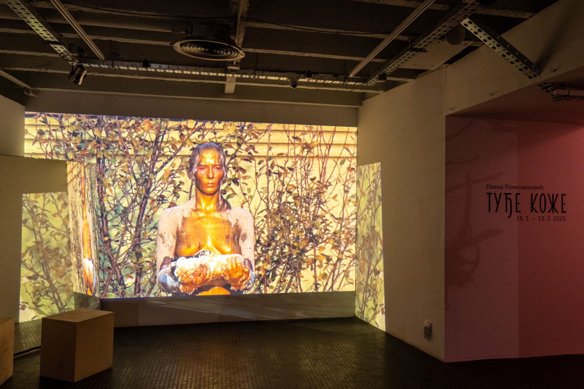 Изложбом Туђе коже Ивана Ранисављевић представља фрагменте радова које је реализовала у периоду од претходне четири године претежно настале током докторских студија на одсеку за Нове медије Факултета ликовних уметности у Београду. У питању је јединствена амбијентална инсталација саткана од фотографских и видео материјала телесних гестова и акција примарно сведених на ауто-насилне радње и издржљивост.