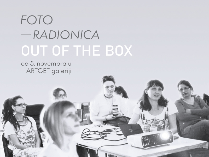 Fotoradionica Out of the box je edukativni istraživački program koji za cilj ima da uputi polaznike radionice kako da se kroz kreativno promišljanje o fotografskom mediju i njegovim mogućnostima, izmeste iz ustaljene zone klasičnog fotografskog pristupa, i pokušaju da realizuju zaokruženu foto priču. Polaznici će kroz predavanja i različite primere iz prakse, dobiti potrebna predznanja o rukovođenju fotografskim projektima, njihovom sprovođenju od ideje do realizacije. Ideja radionica je da kroz učenje o fotografiji kao umetničkoj formi sa specifičnim jezikom komunikacije polaznici dobiju osnovna znanja o fotografiji, koje će uobličiti kroz praktičan rad.