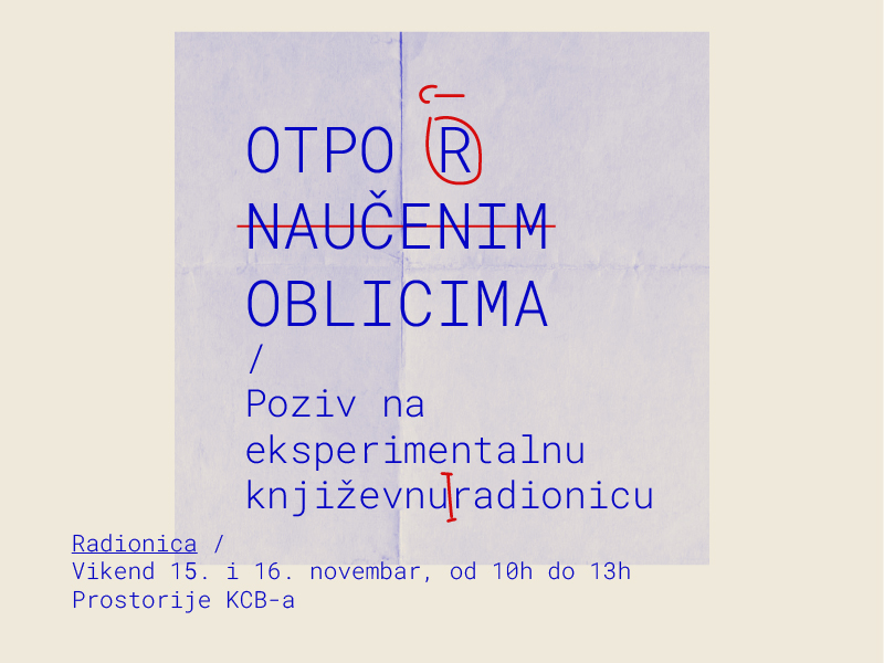 Radionica je deo dijaloško-književnog programa Pristupi, prelomi, koji je osmislila Maša Seničić kao gostujuća urednica KCB-a.