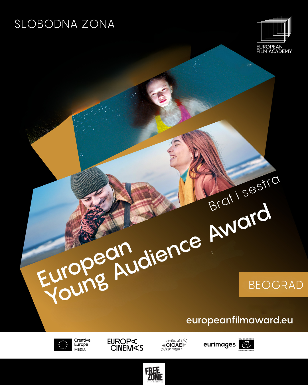 Zahvaljujući Filmskom festivalu Slobodna zona, duh evropskih Oskara stiže u Beograd i Srbiju u subotu, 17. januara. U Dvorani Kulturnog centra Beograda tog dana od 12 sati biće organizovane projekcije filmova nominovanih za ovogodišnju Nagradu mlade publike. Mladi gledaoci iz Srbije, zajedno sa vršnjacima iz više od 30 evropskih zemalja, učestvovaće u interaktivnom glasanju za najbolji film.