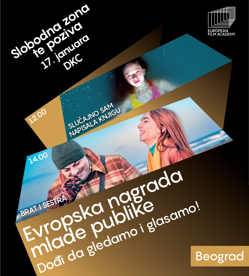 Zahvaljujući Filmskom festivalu „Slobodna zona“, duh evropskih Oskara stiže u Beograd i Srbiju u subotu, 17. januara. U Dvorani Kulturnog centra Beograda tog dana od 12 sati biće organizovane projekcije filmova nominovanih za ovogodišnju Nagradu mlade publike. Mladi gledaoci iz Srbije, zajedno sa vršnjacima iz više od 30 evropskih zemalja, učestvovaće u interaktivnom glasanju za najbolji film.