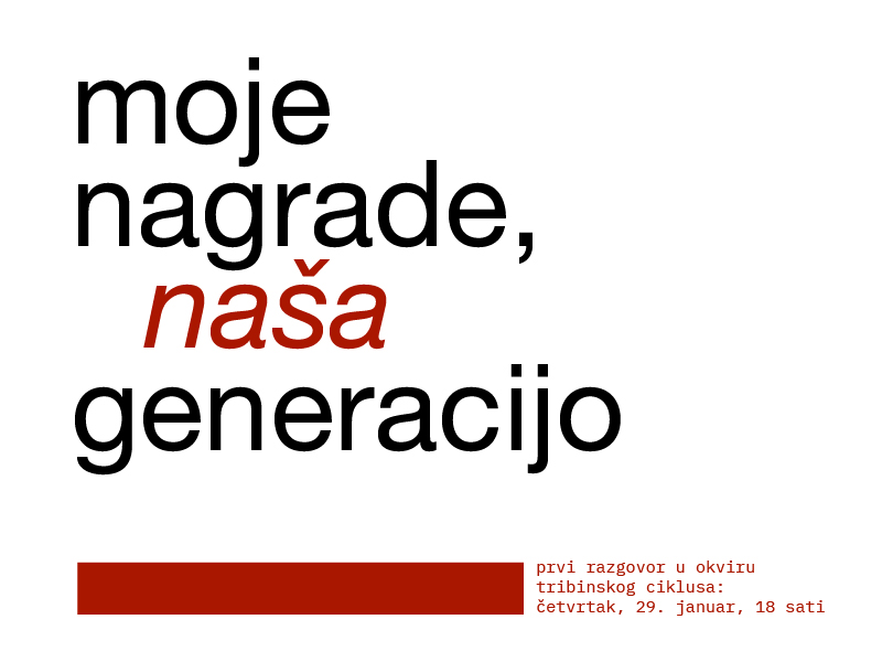 Moje nagrade, naša generacijo istovremeno je razgovor o nagradama i bez nagrada, o vidljivima i nevidljivima, o kanonima u nastajanju i onima koji se nikada neće formirati. Program se bavi revizijom institucija u književnosti – kroz analizu njihovog realnog dometa, ograničenja i simboličkog kapitala u savremenom kontekstu.