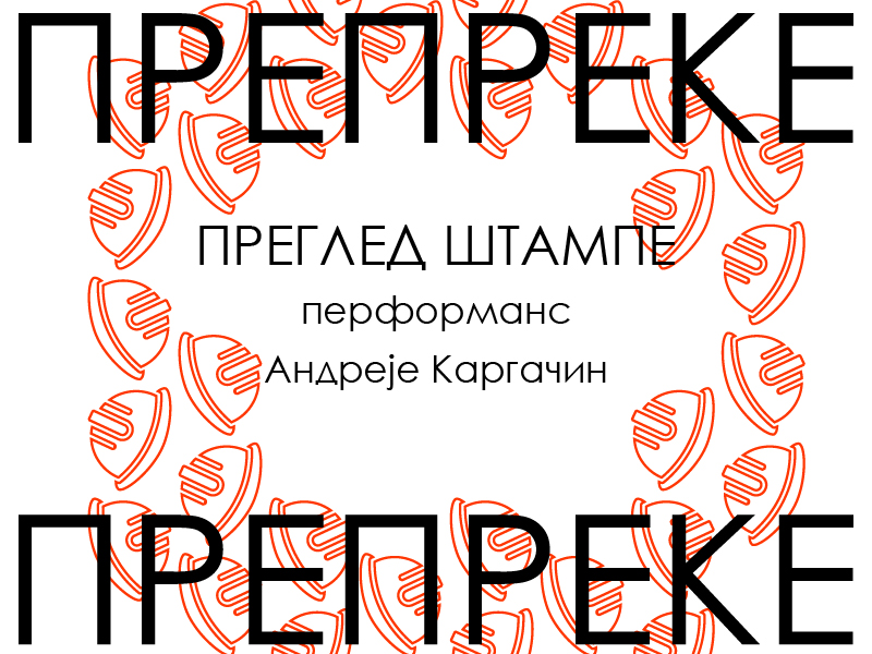 U četvrtak, 26. februara, u Podroom galeriji, u okviru programa Prepreke, biće predstavljen performans Pregled štampe umetnice Andreje Kargačin. U Pregledu štampe umetnici će se priključiti Bane, Anja, Mila i Dora, studenti koji su već skoro godinu dana u političkom egzilu pod optužbom da ruše ustavni poredak. Uznemireni urušavanjem slobode govora i mišljenja, pokušaće da privremeno stvore Jedinu slobodnu televiziju i da objektivno sagledaju situaciju u kojoj se nalaze. Takođe, iskoristiće priliku da se pripreme za godišnjicu svog egzila.