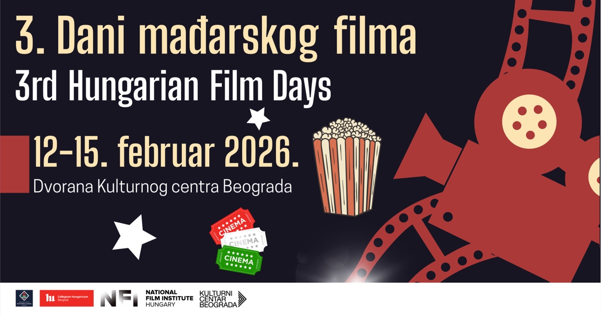 U organizaciji Kolegijum Hungarikuma (Collegium Hungaricum Belgrád / Collegium Hungaricum Belgrade) i Kulturnog centra Beograda, od 12. do 15. februara, biće održani Treći dani mađarskog filma u Dvorani Kulturnog centra Beograda.