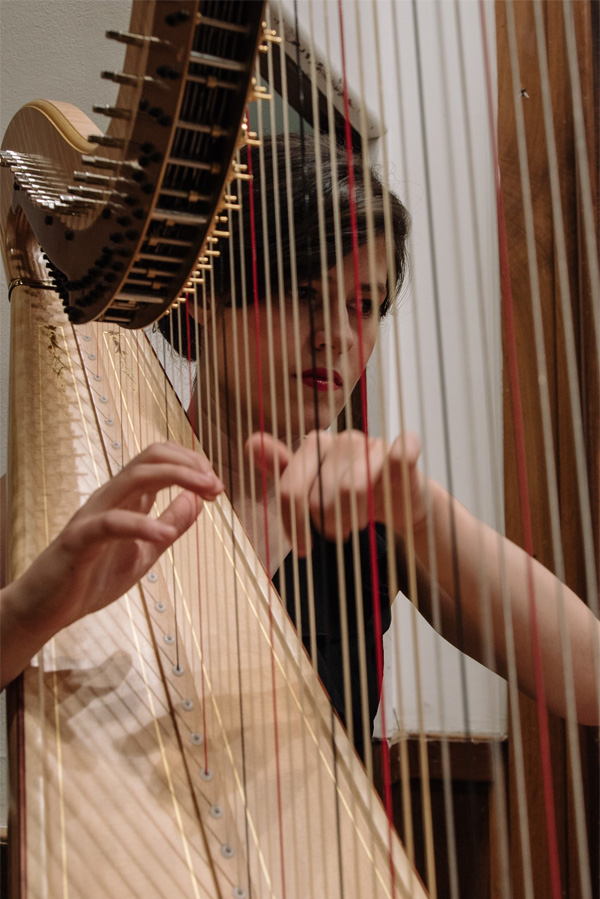 Mina Ćapin, harfistkinja Beogradske filharmonije, poznata je kao solo i kamerni muzičar izuzetne ekspresivnosti.